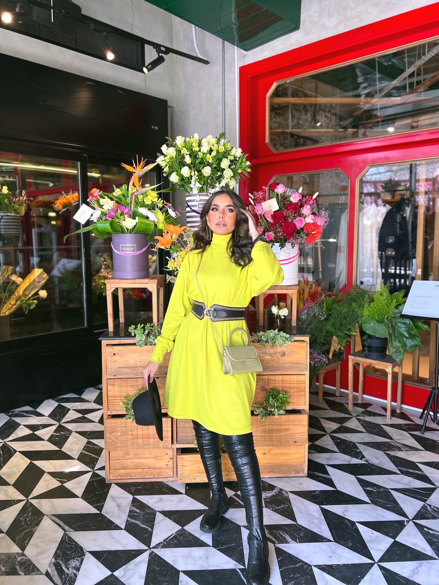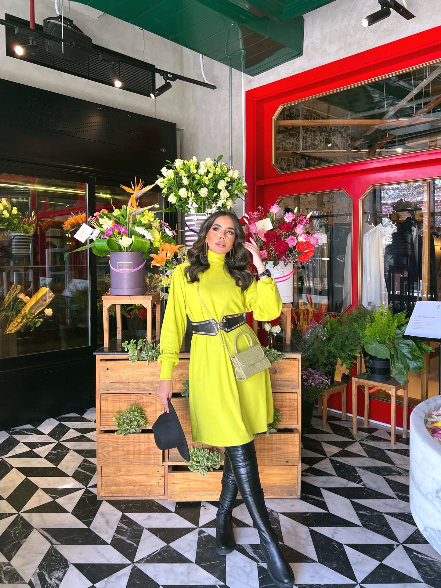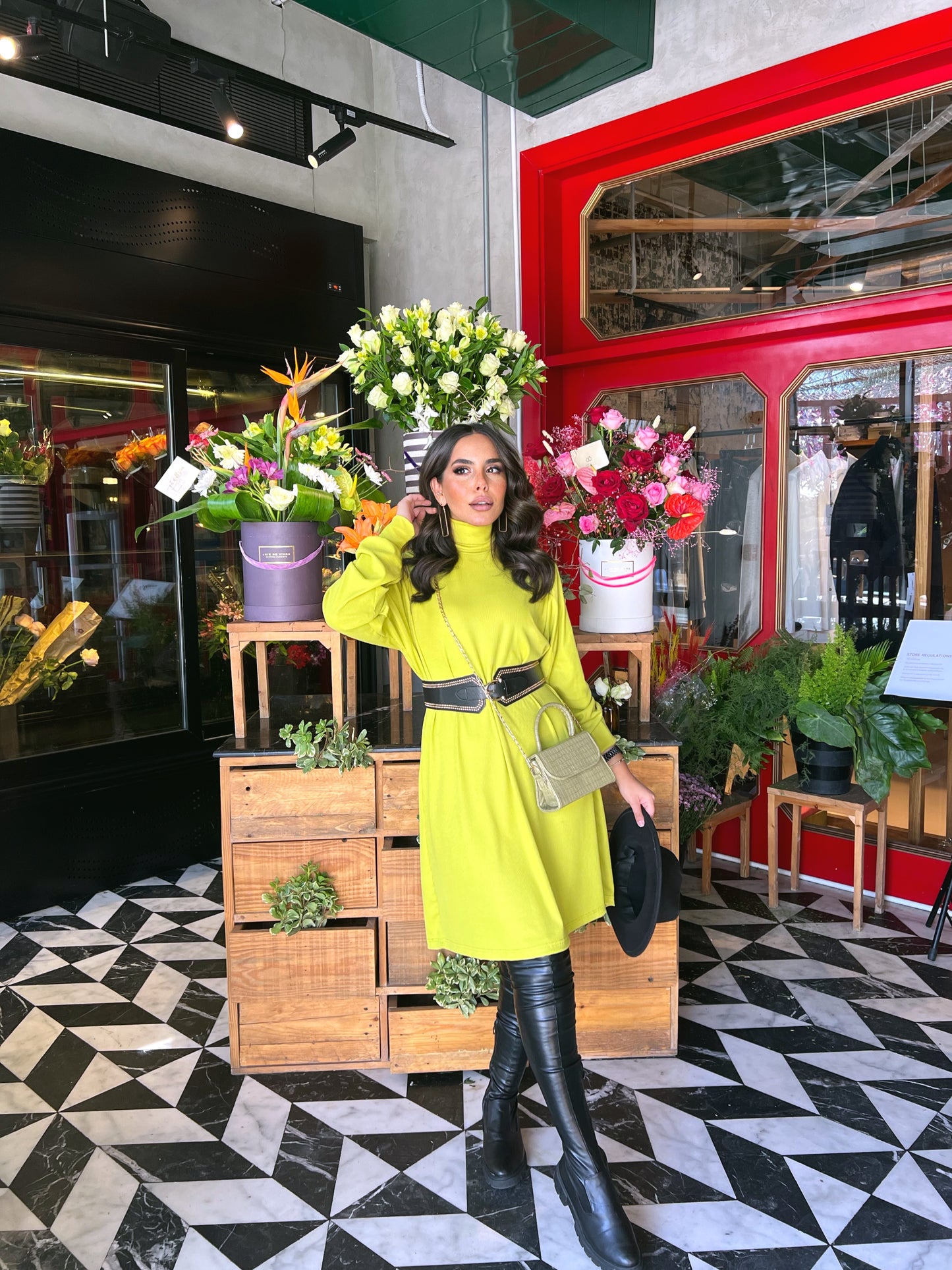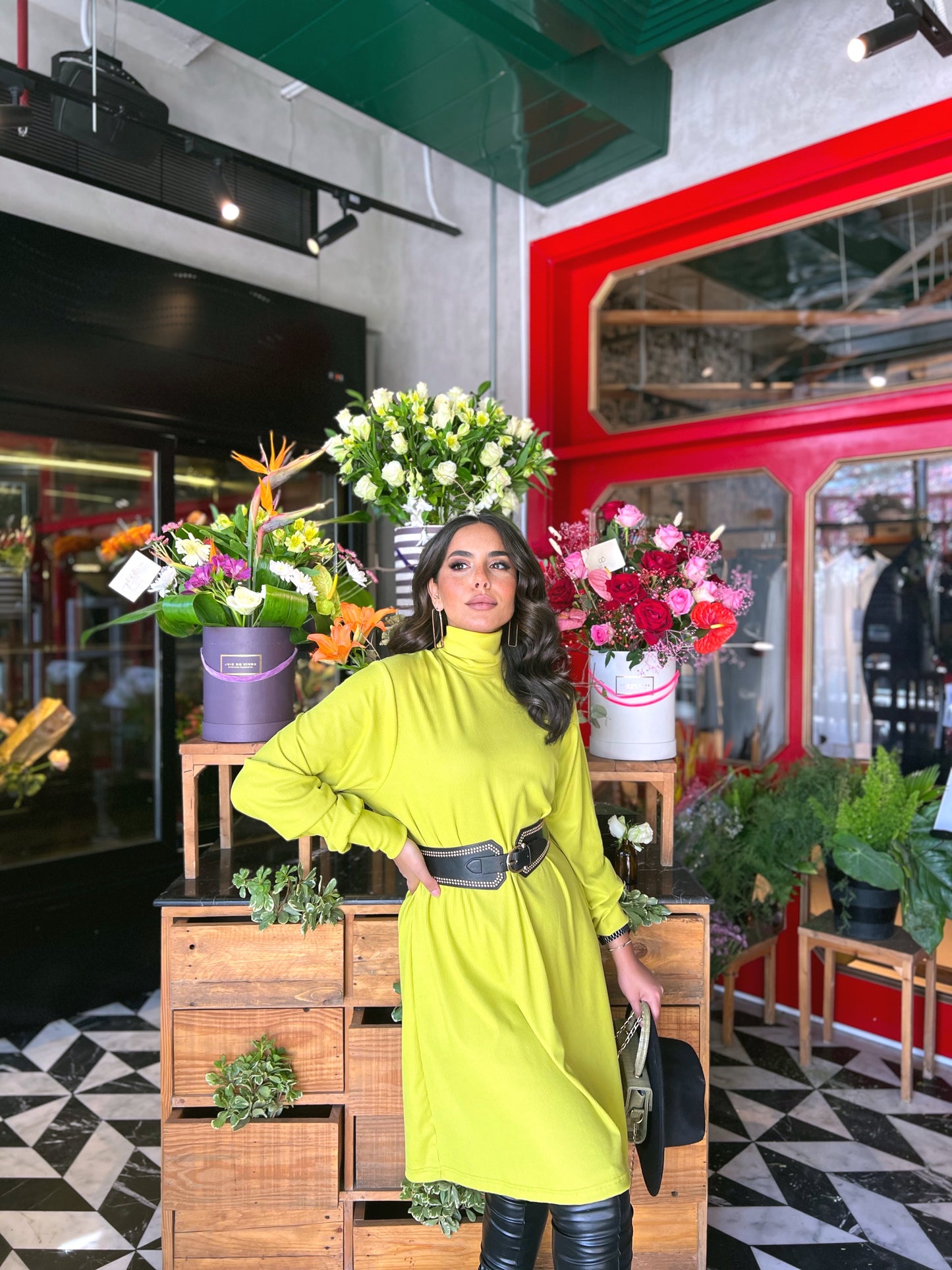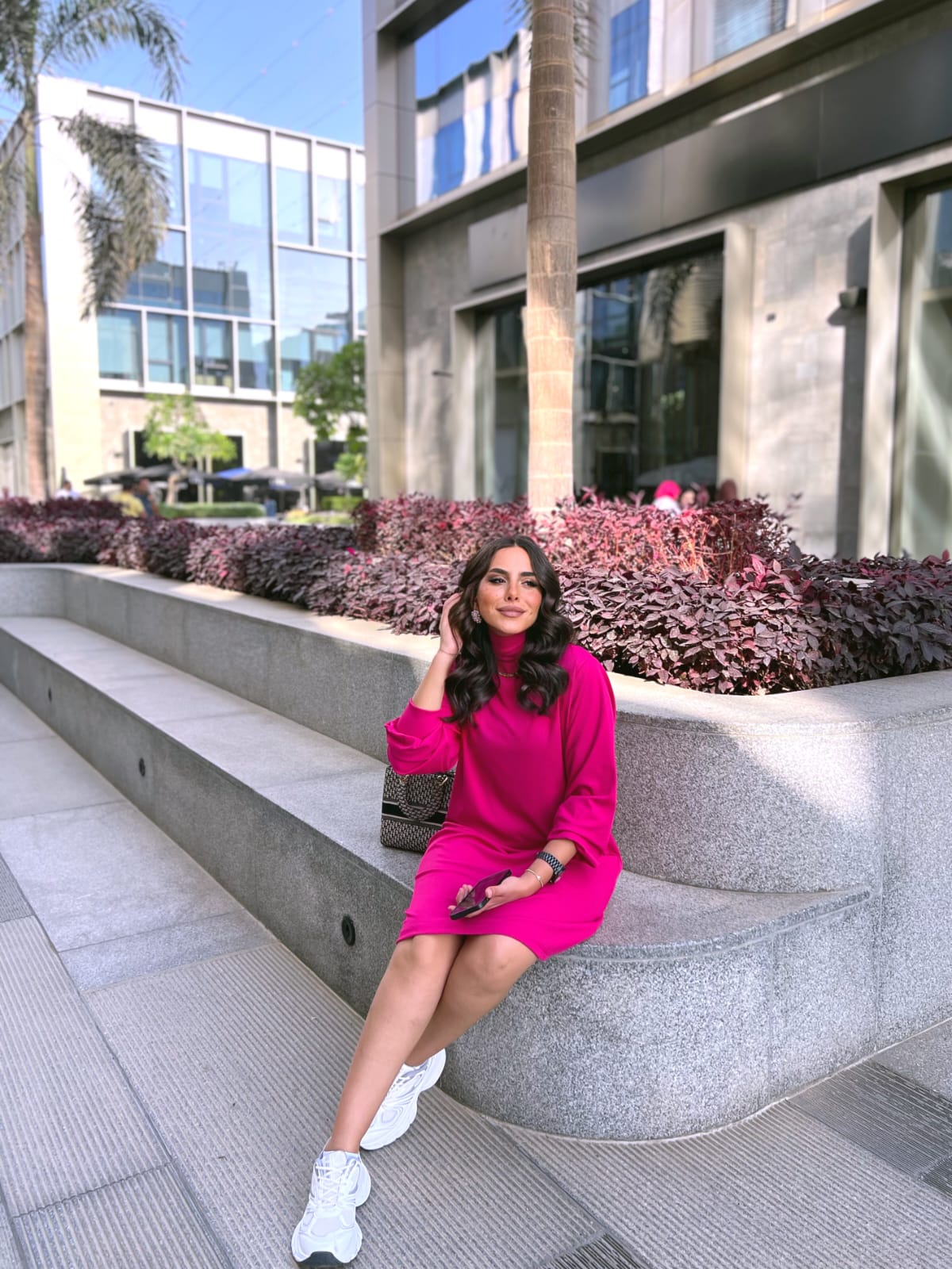 ارتقي بإطلالتكِ مع فستان كاجوال بأكمام طويلة وياقة عالية.