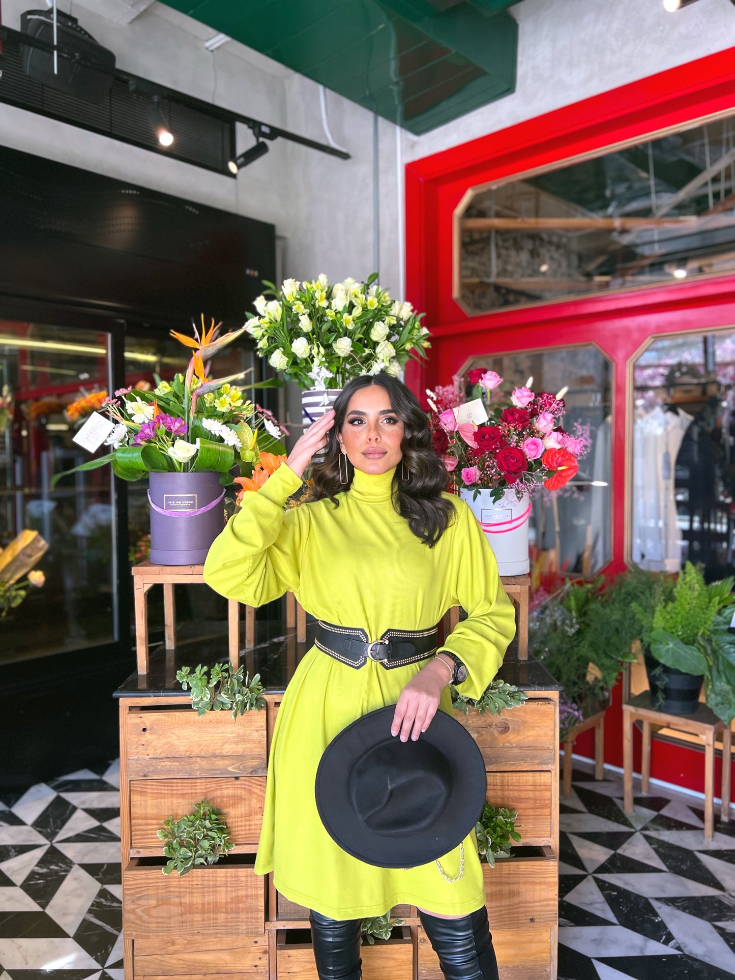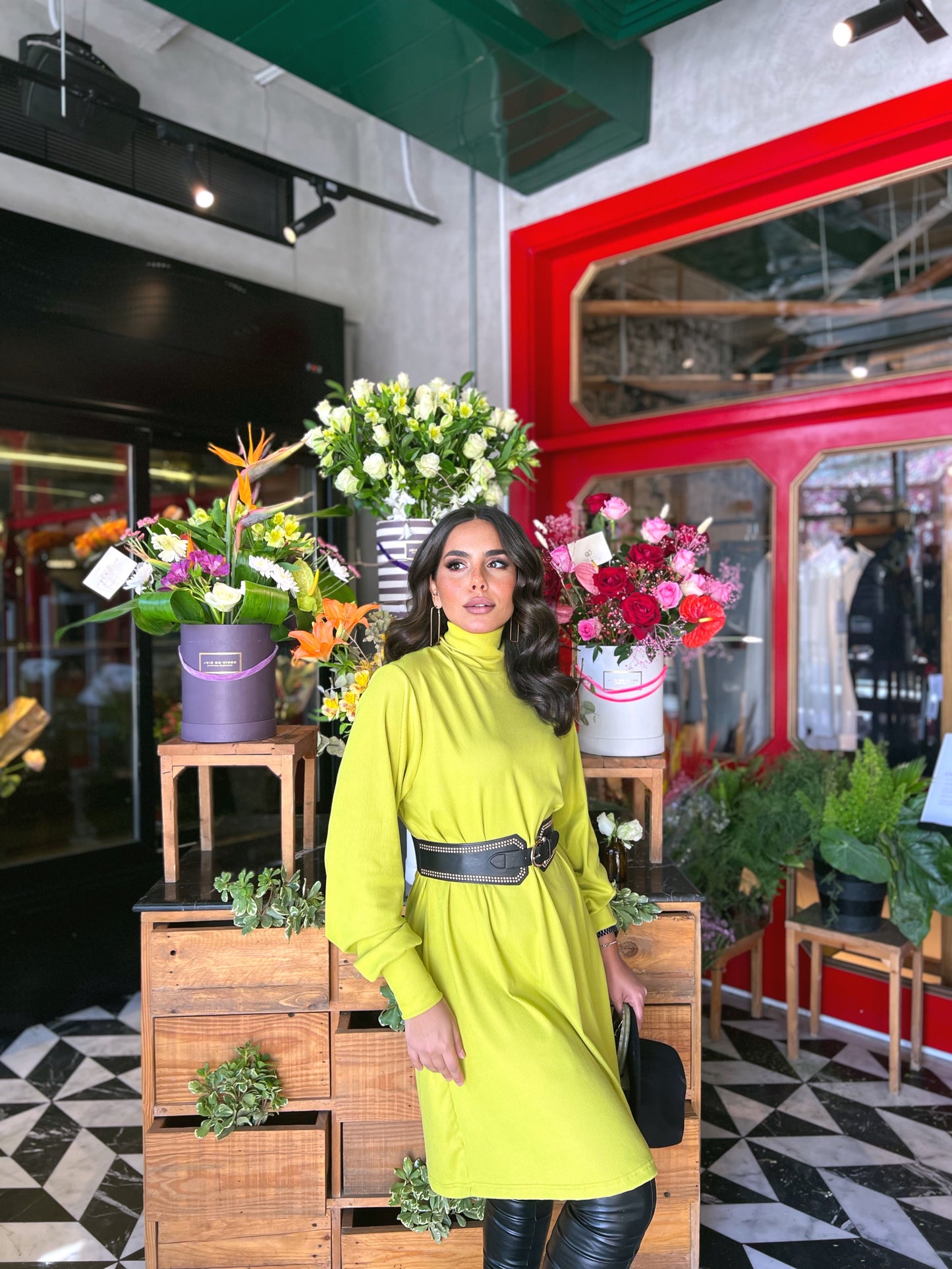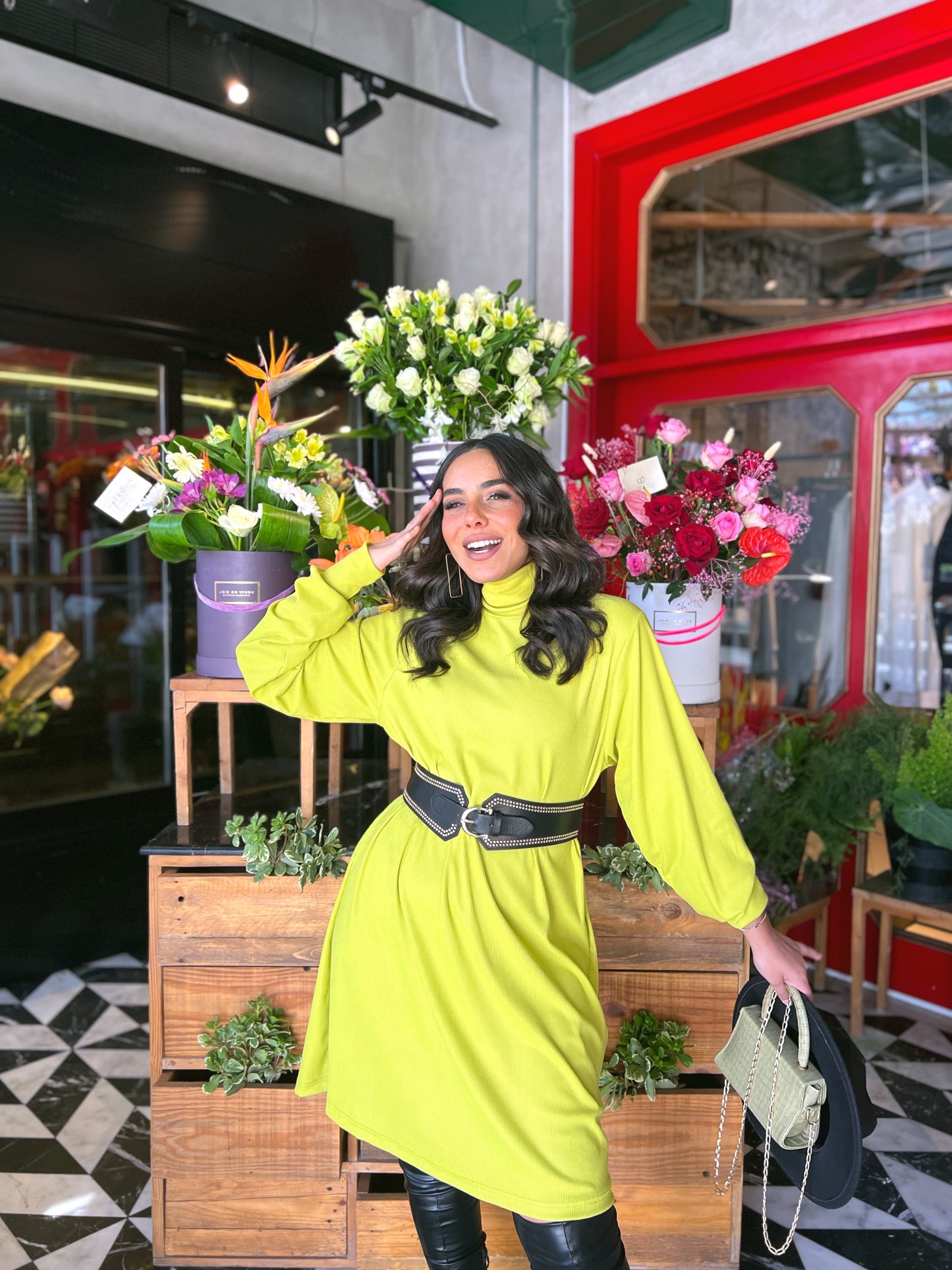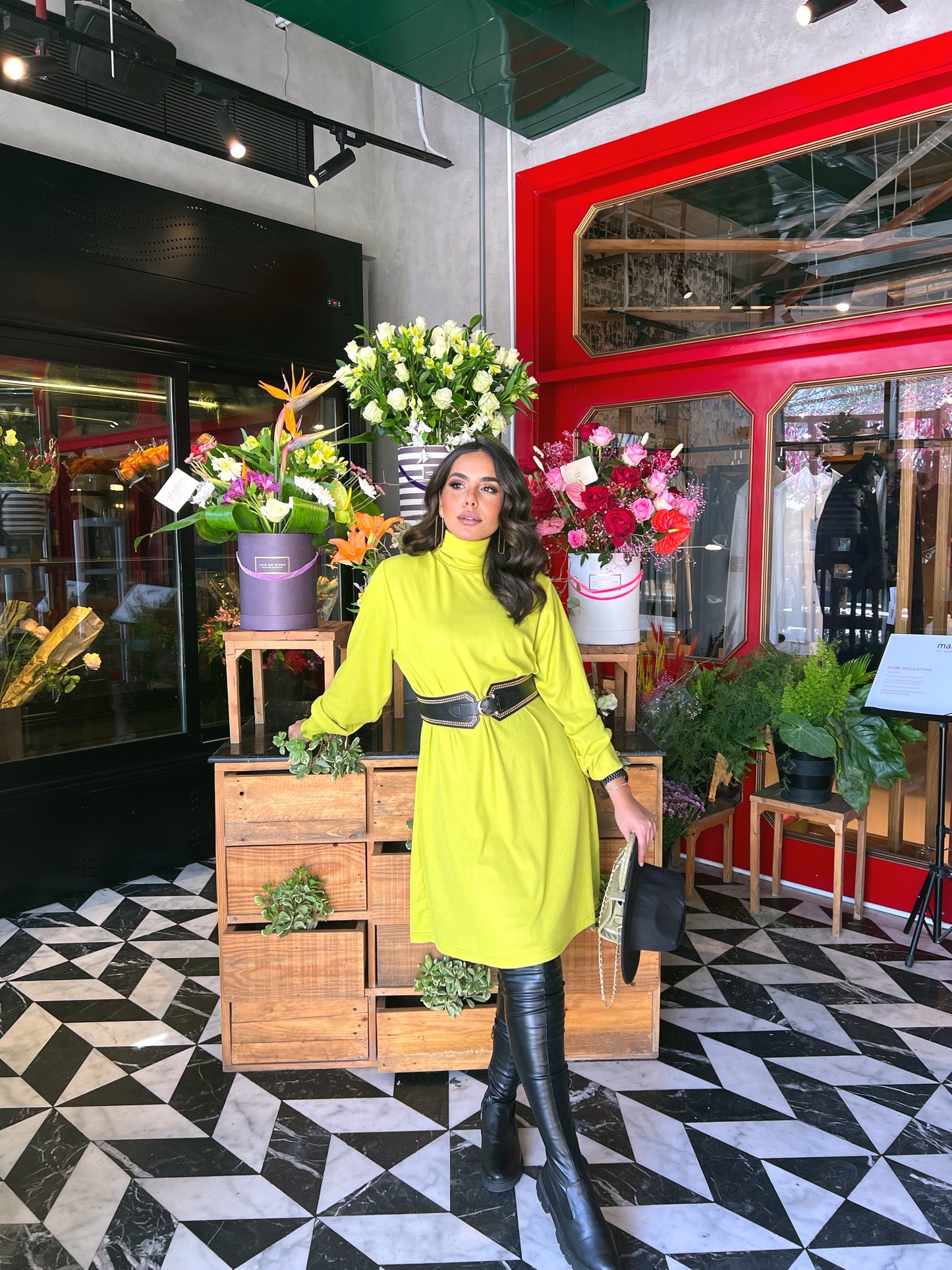 ارتقي بإطلالتكِ مع فستان كاجوال بأكمام طويلة وياقة عالية.