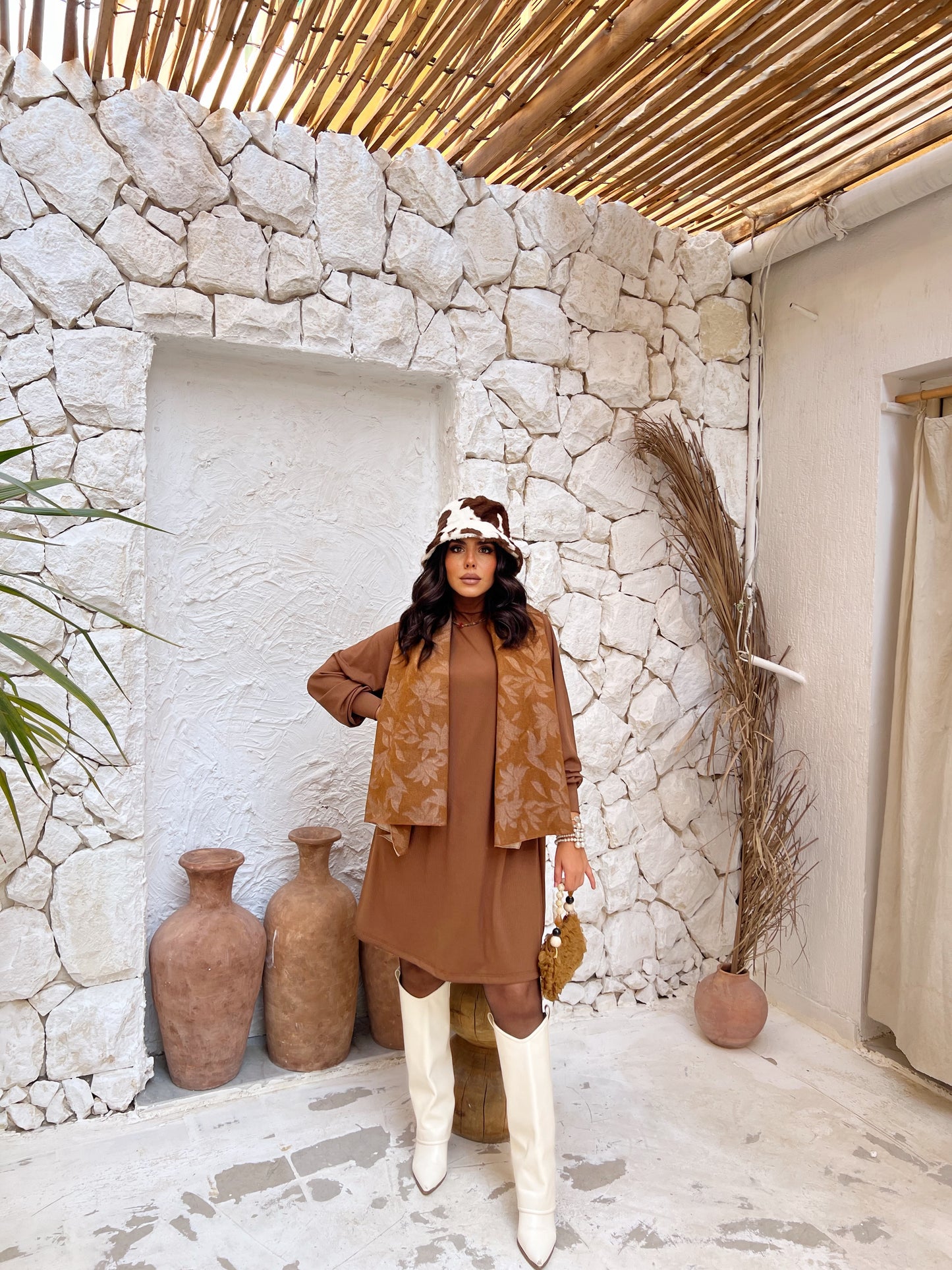 مصنوع من خامات عالية الجودة، يجمع هذا الفستان بين الراحة والأناقة. يوفر تصميمه ذو الأكمام الطويلة والياقة العالية دفئًا إضافيًا دون المساس بجاذبيته العصرية. مثالي لأي مناسبة كاجوال، ليمنحكِ إطلالة أنيقة ومريحة طوال اليوم.