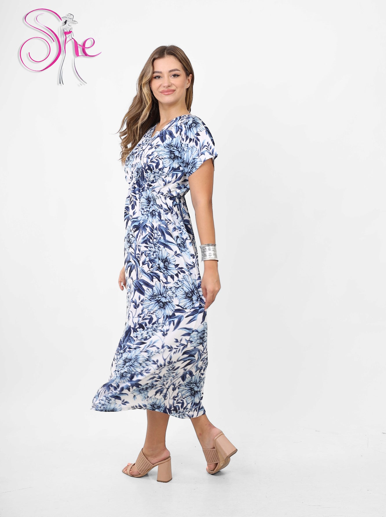 مصنوع بعناية من مزيج من الفيسكوز والقطن، يتميز هذا الفستان الكاجوال الأزرق المزين بالورود بنسيجه الخفيف والمريح، مما يجعله مثاليًا للارتداء اليومي. بفضل خامته الناعمة والقابلة للتنفس، يجمع هذا الفستان بين الأناقة والراحة ليمنحك إطلالة رائعة طوال اليوم.