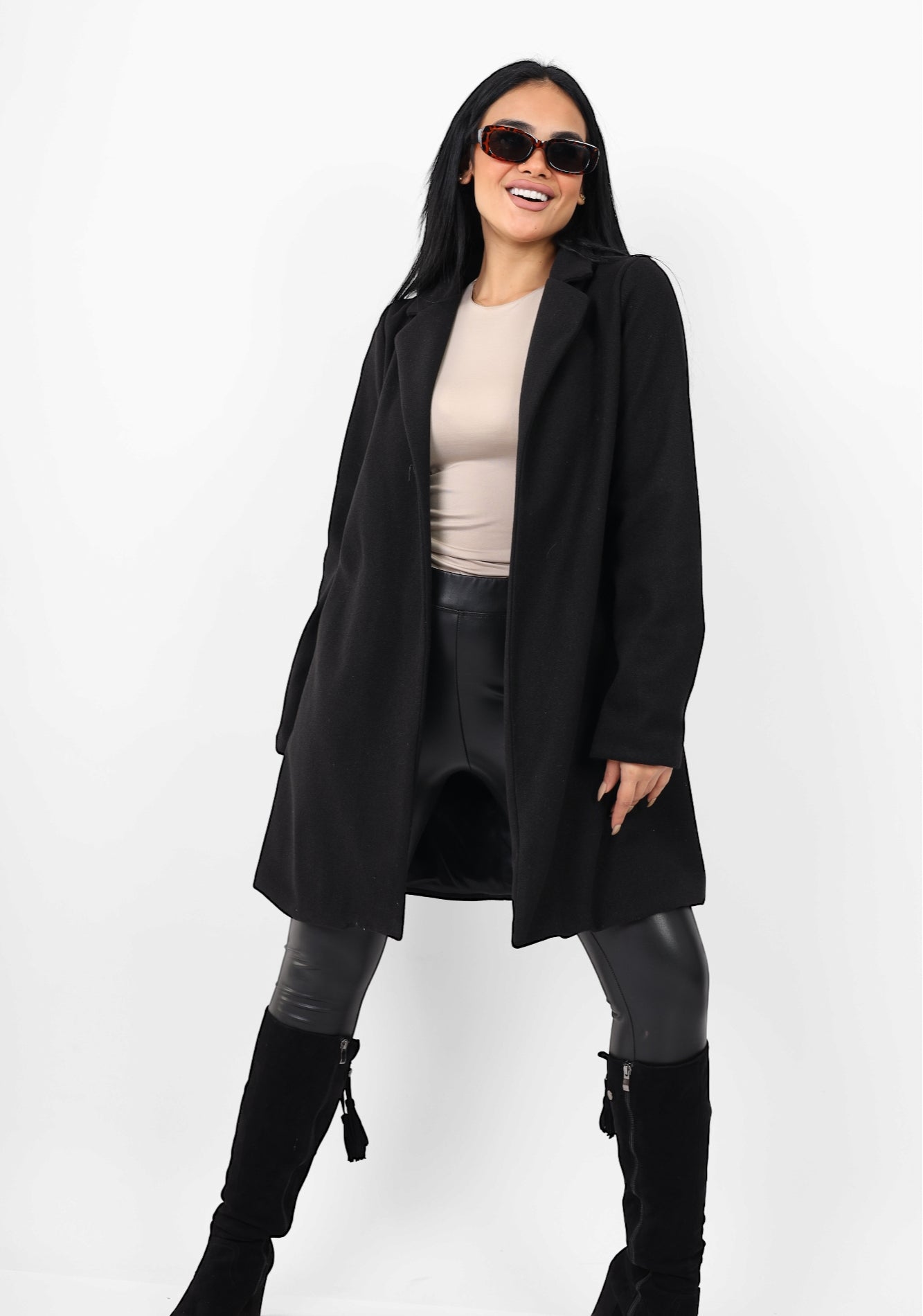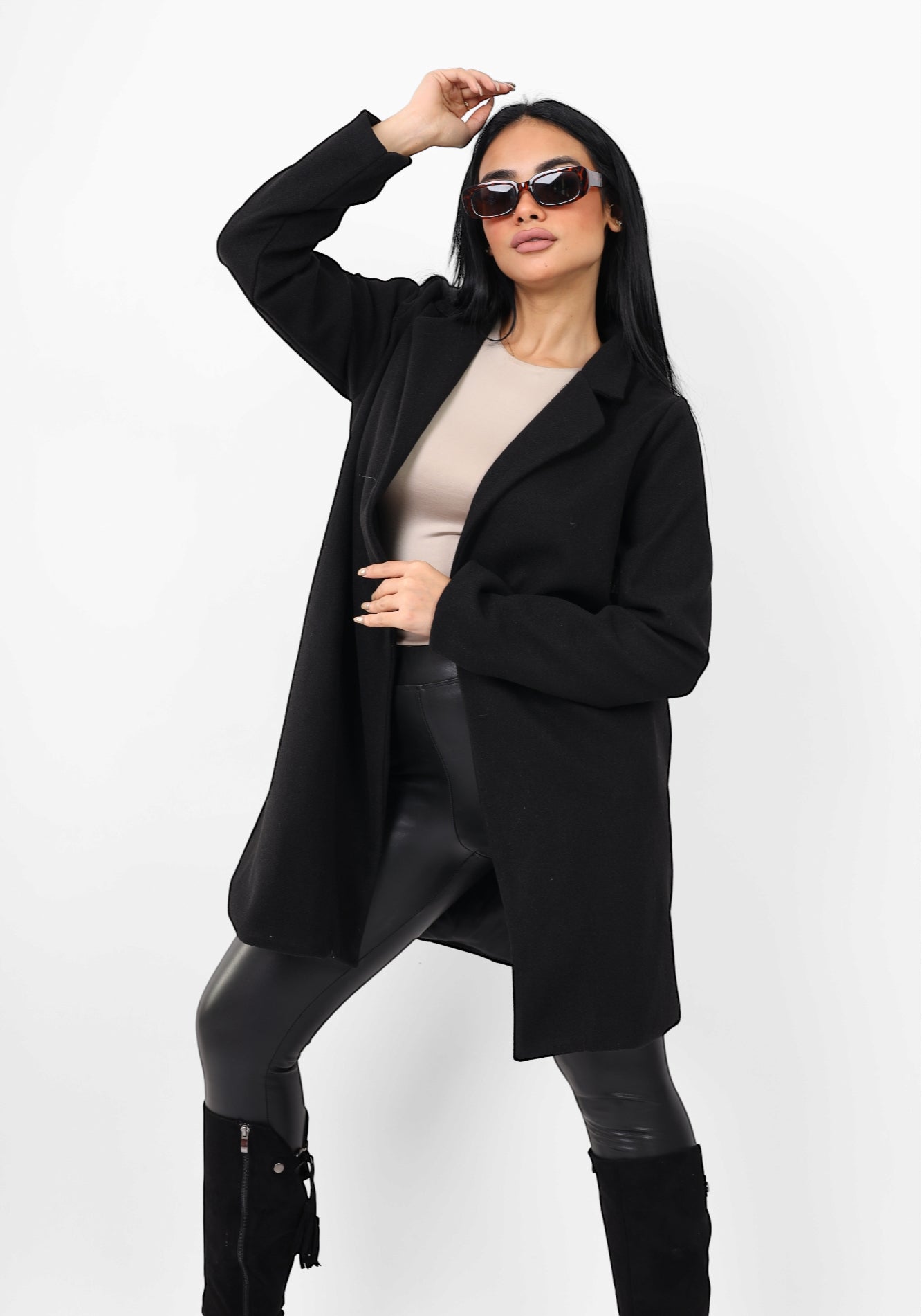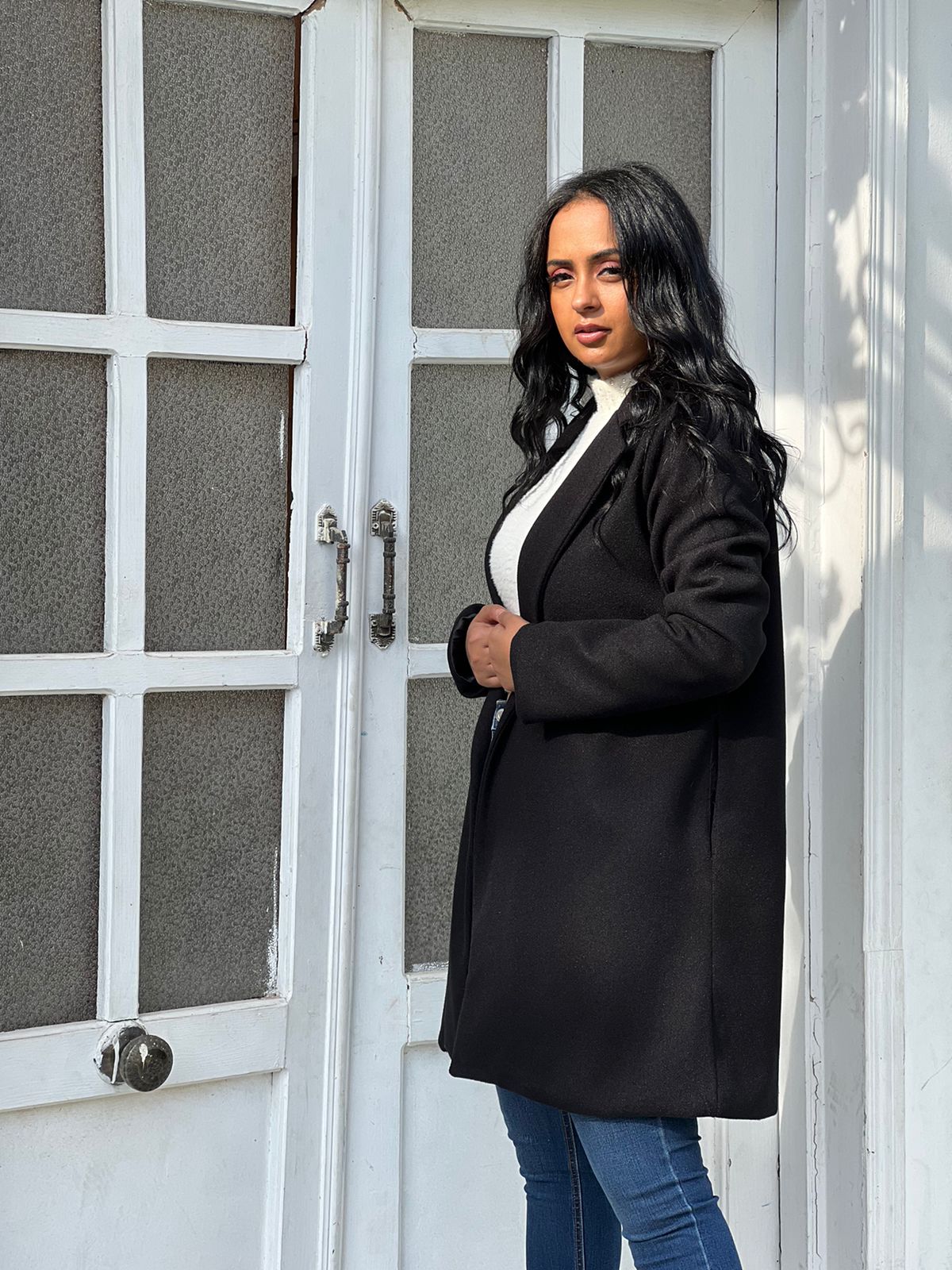 قطعة أساسية في خزانتك، هذا المعطف الكلاسيكي الصوفي يجمع بين الأناقة والراحة. مصنوع من صوف فاخر مع بطانة ستان ليمنحك دفئًا وقصة أنيقة مثالية للتنسيق. بتصميم مرتب وقصة مُحكمة، يضفي لمسة راقية على أي إطلالة