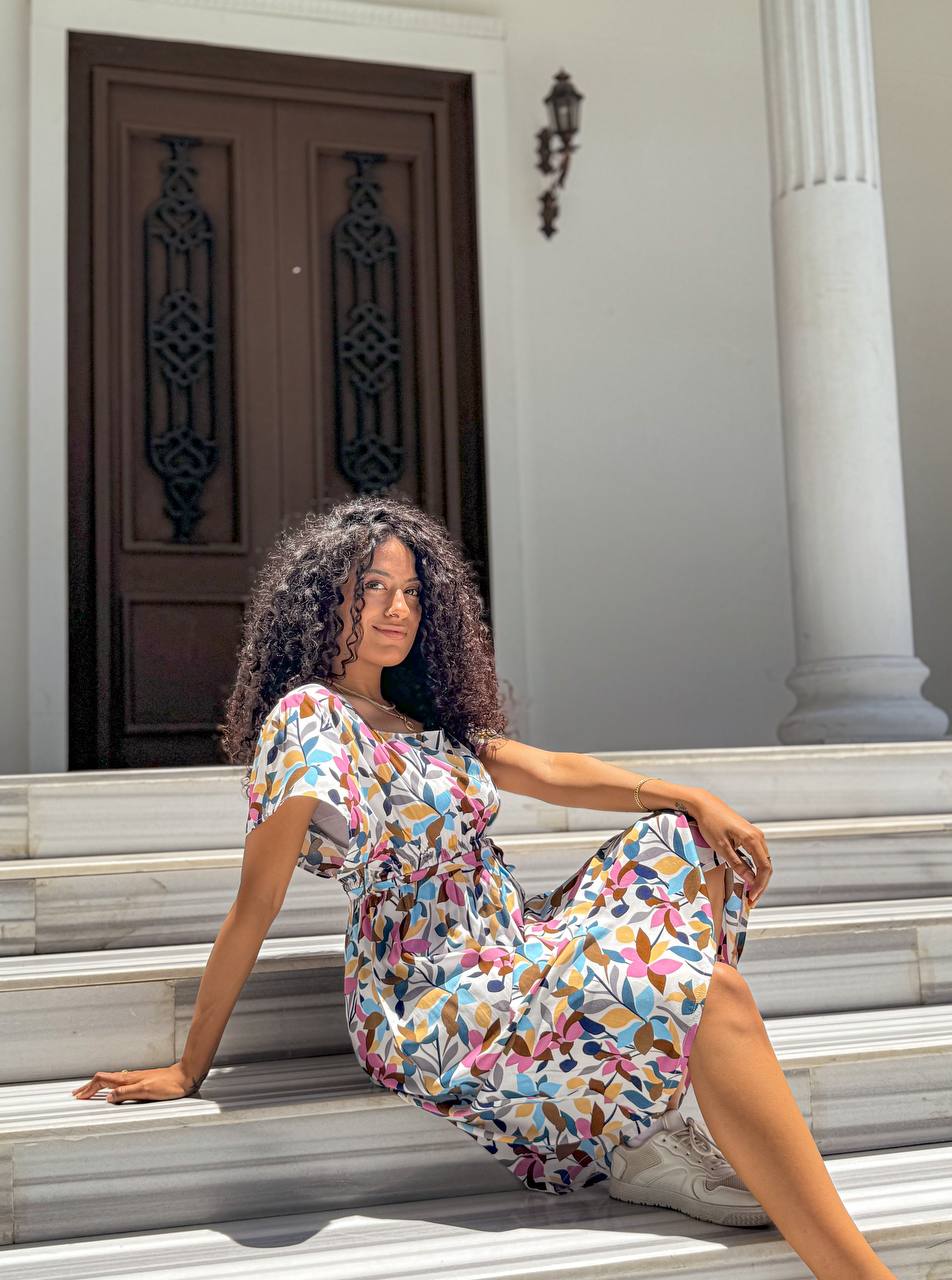 تألقي مع فستان فلورال بريز الكاجوال بتصميم منقوش بالزهور، أكمام قصيرة منسدلة، وخصر مشدود لإطلالة جذابة. مصنوع من قماش ناعم وخفيف، مما يجعله مثالياً للأيام الدافئة. نسقيه مع حذاء رياضي لإطلالة كاجوال أو كعب لإطلالة أنيقة