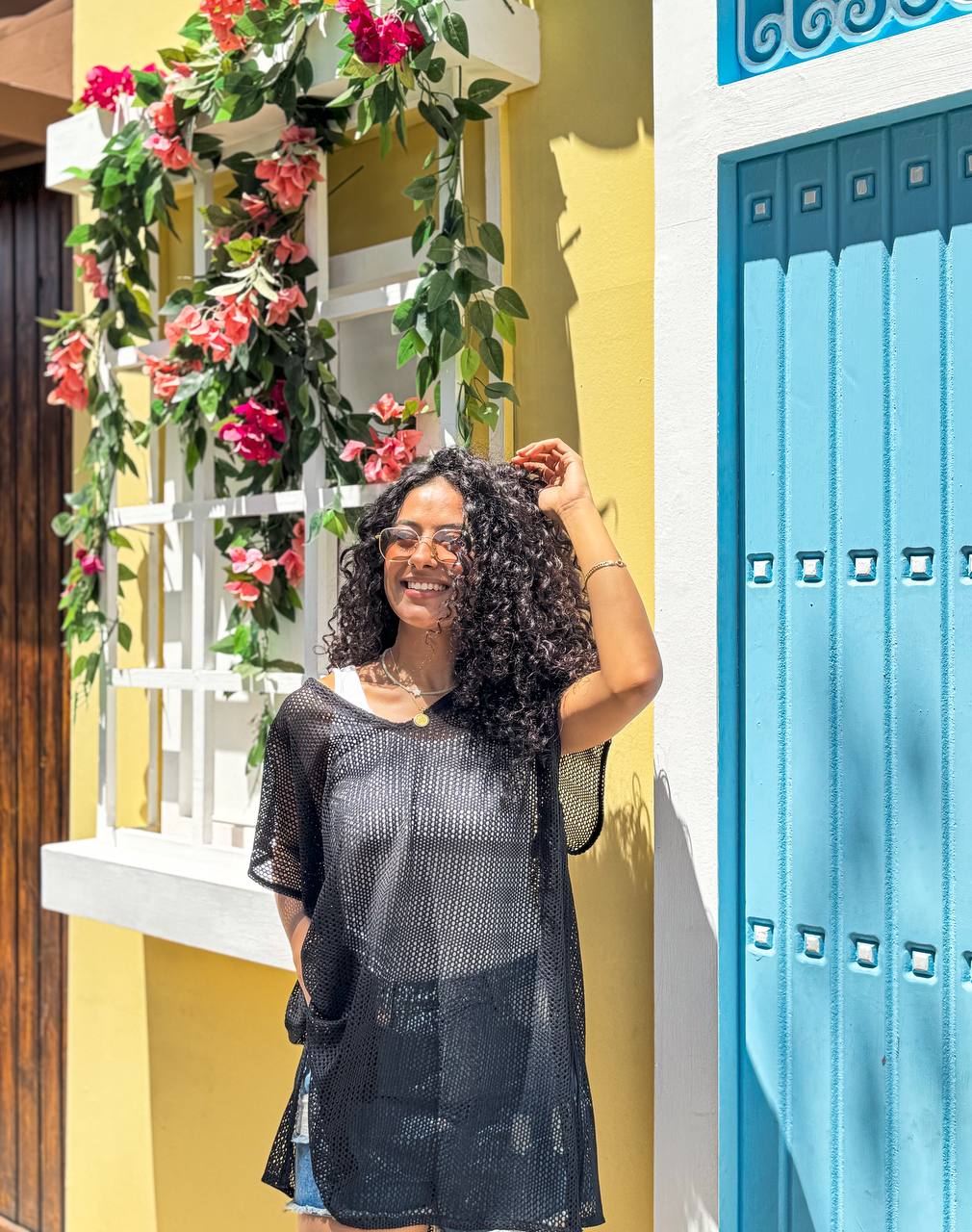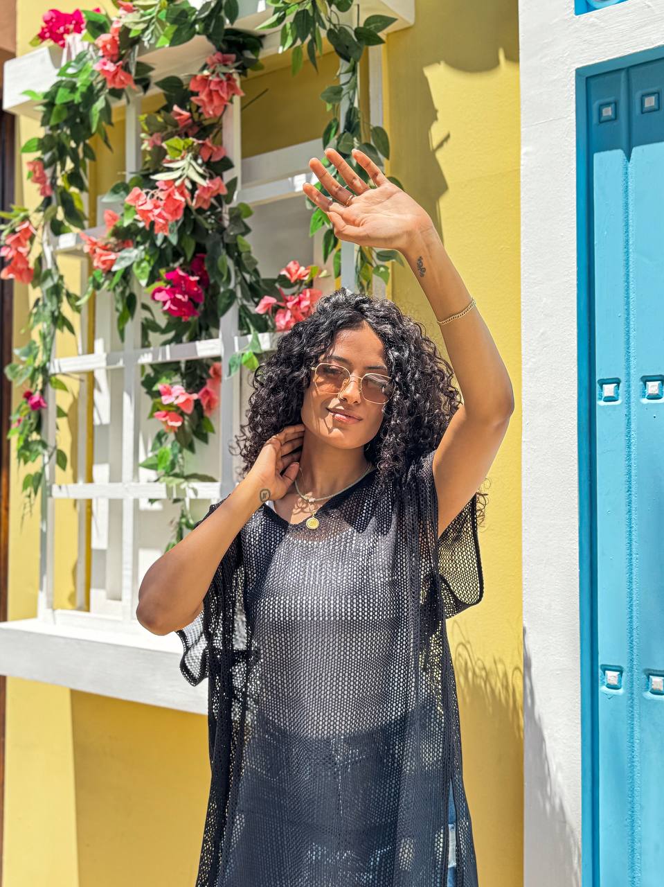 ارتقي بإطلالتك الصيفية مع هذا التونيك الشبكي الأنيق. يتميز بقماش خفيف الوزن وقابل للتنفس، مما يجعله مثالياً للارتداء فوق ملابس السباحة أو الإطلالات الكاجوال. بتصميم واسع ومريح، يعد هذا التونيك إضافة ضرورية لأيام الشاطئ والعطلات