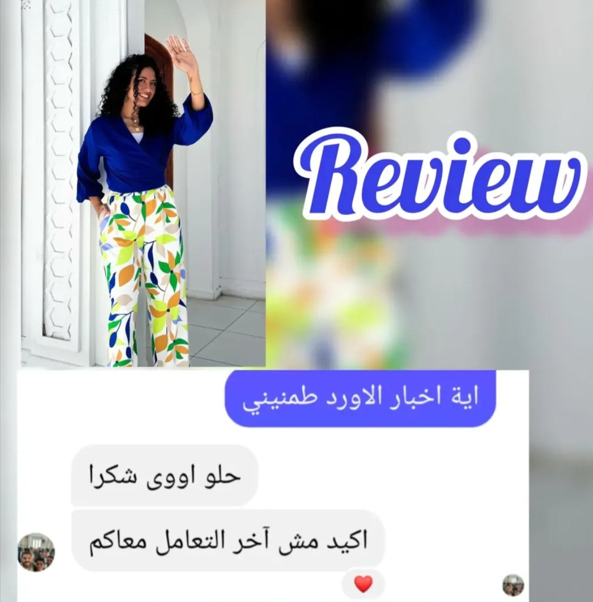 Our customer is thrilled with her Printed Two Pieces Blue Blouse & Floral Pants! 💙🌿