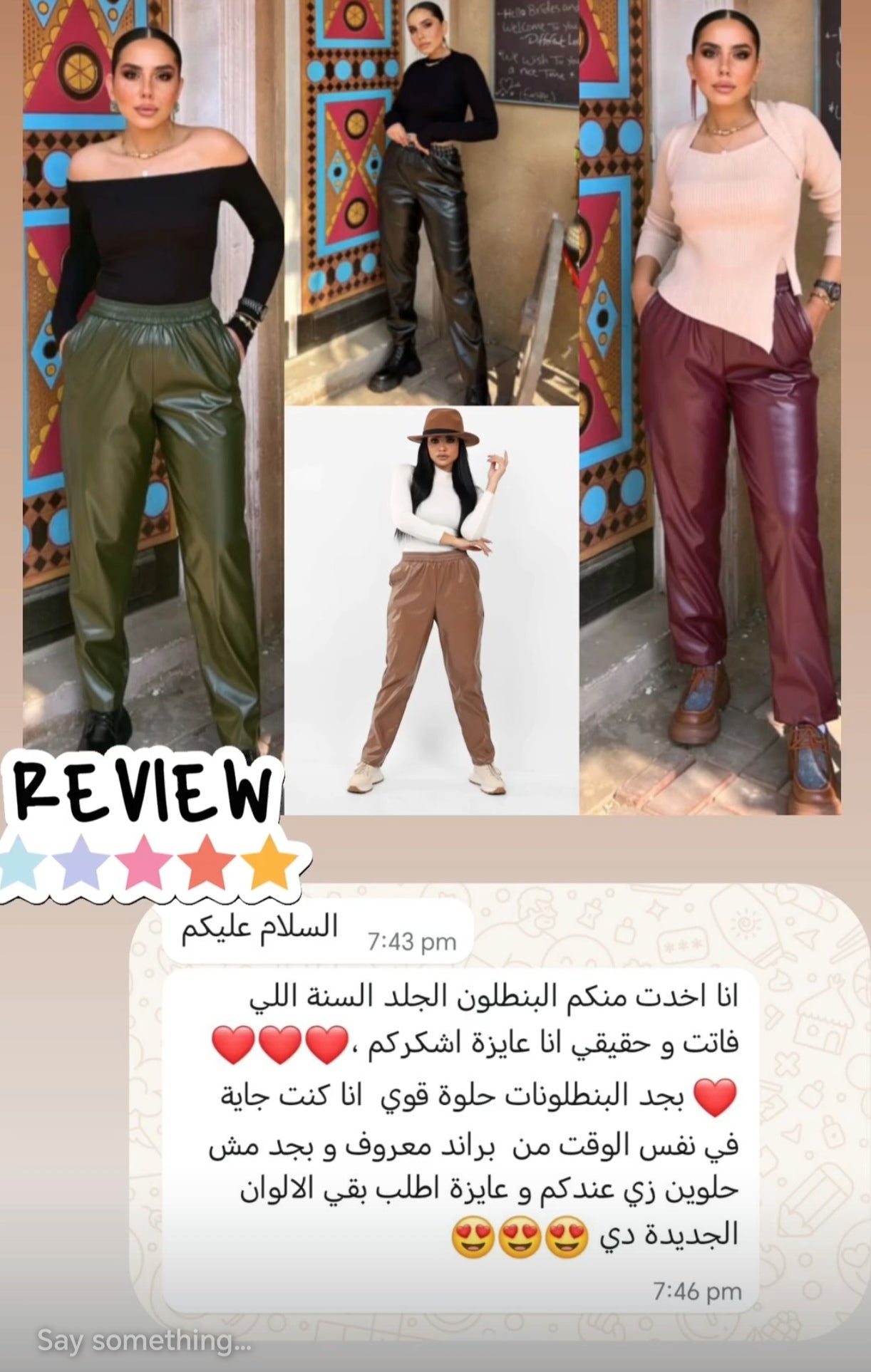 Our customer is absolutely in love with our Leather Pants Collection! 🖤🤎💚