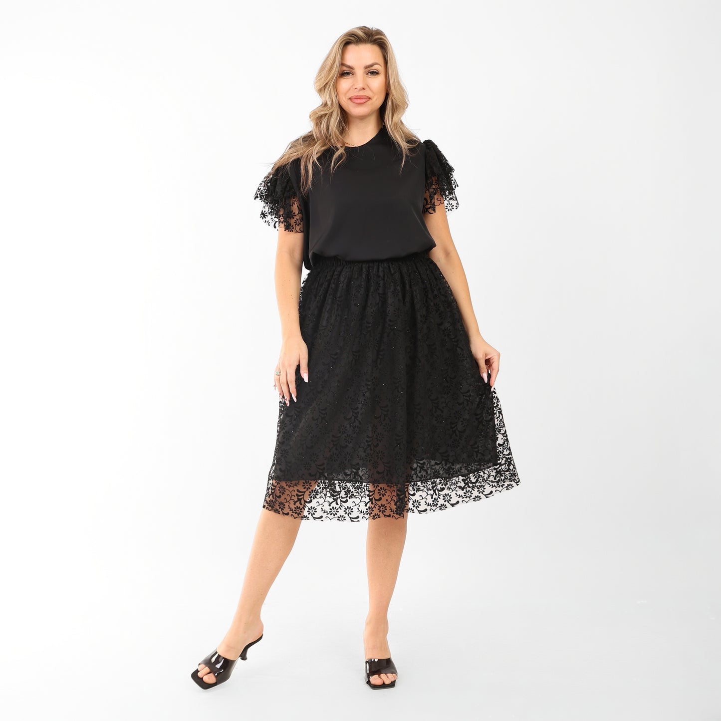 Pair it with our Embroidered Tulle Skirt for a sophisticated all-black ensemble.