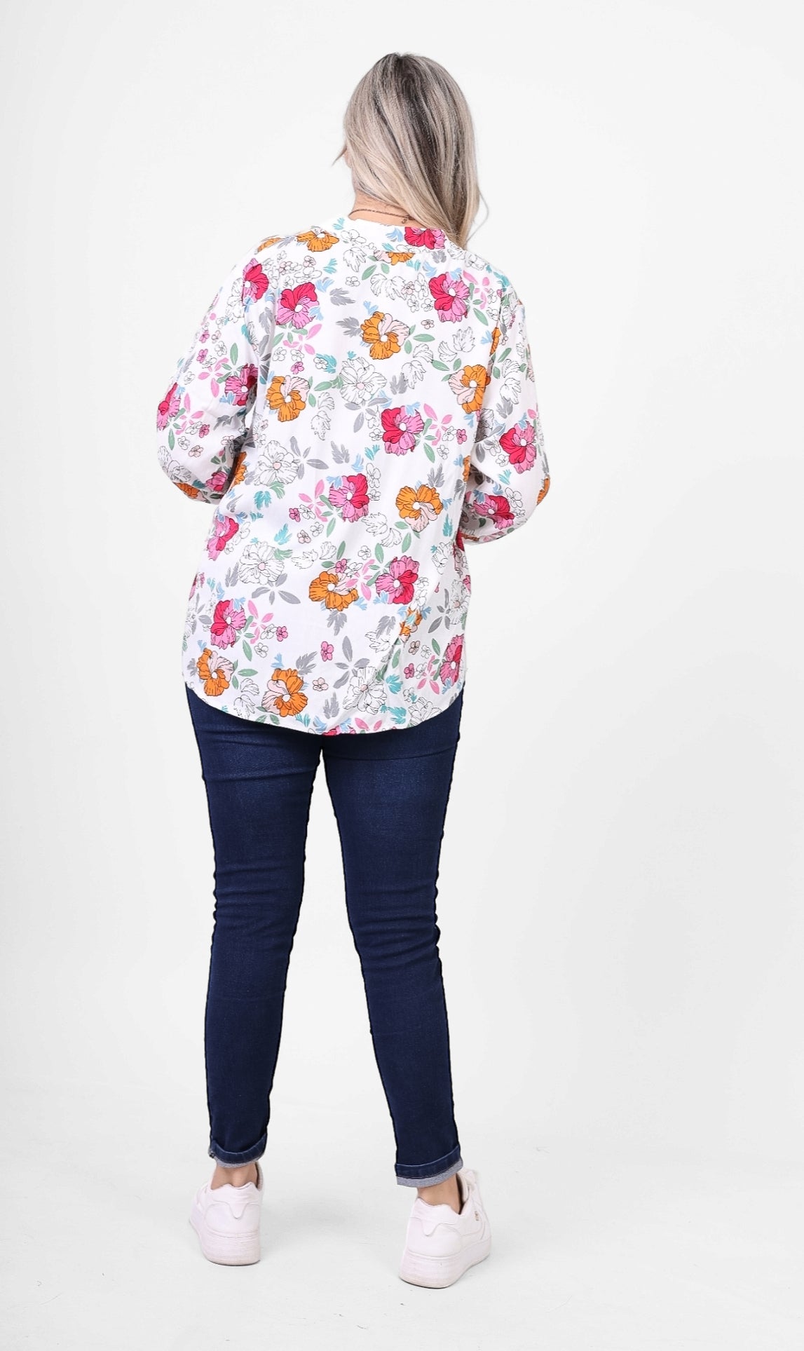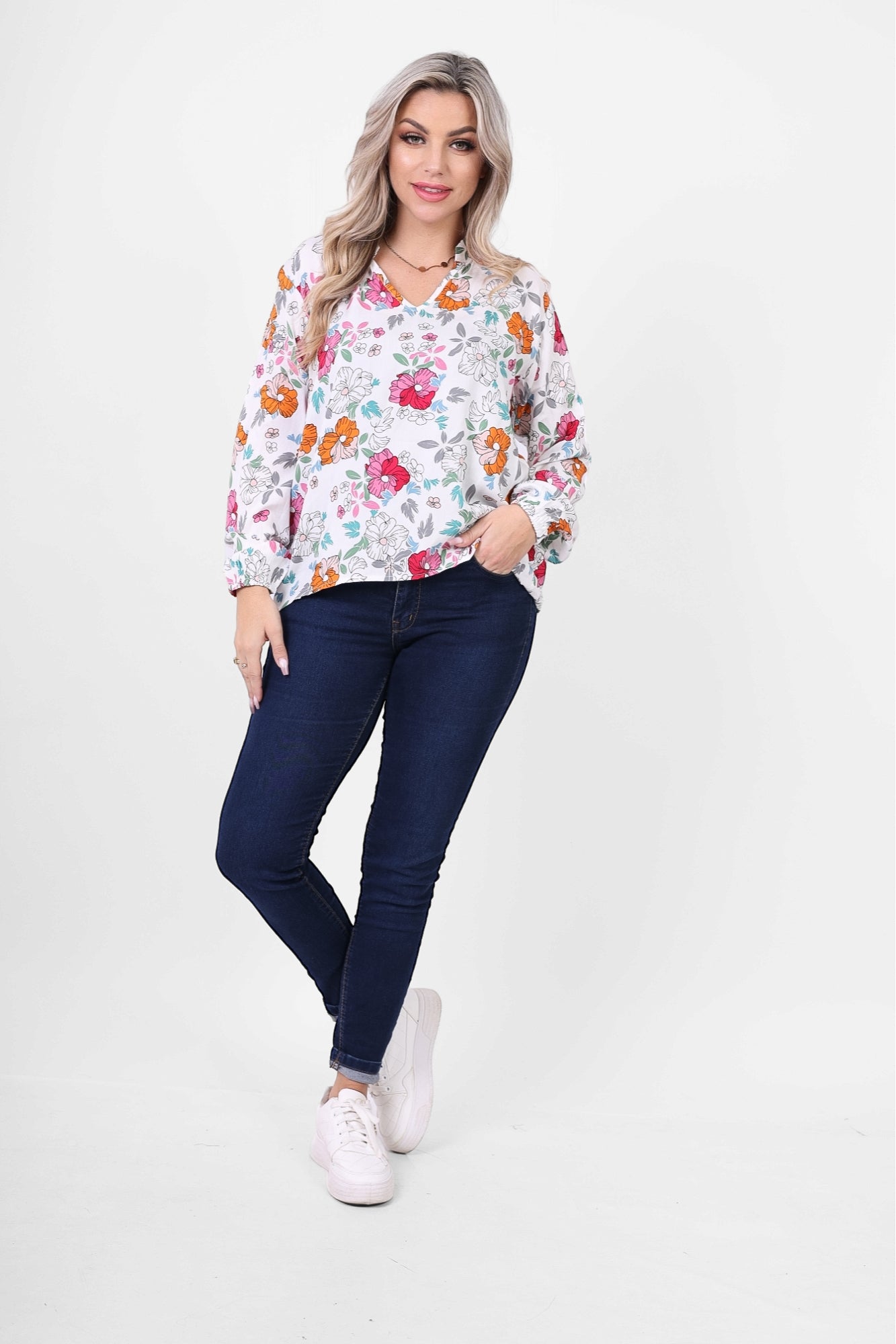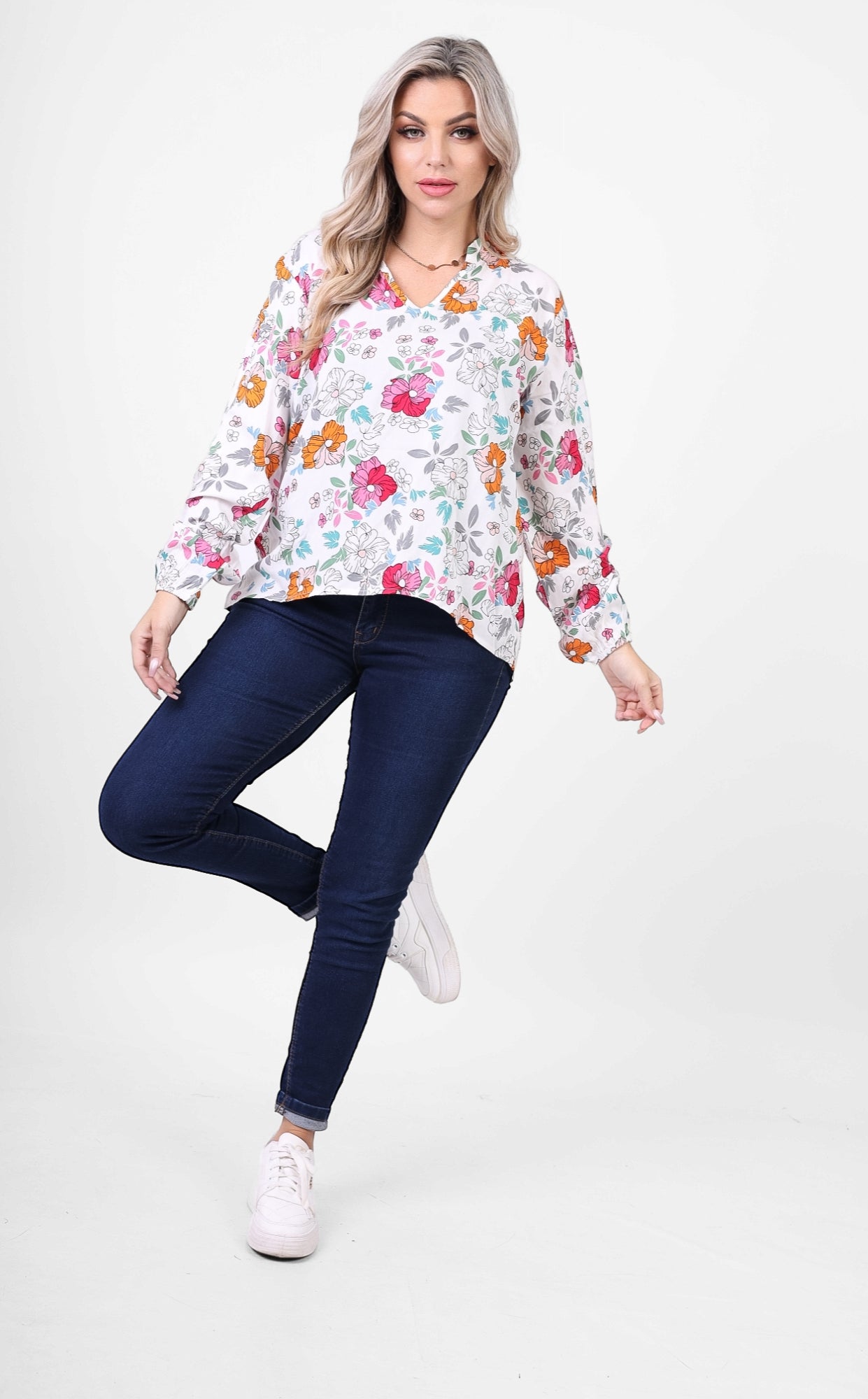 Add a touch of freshness with this Floral Print V-Neck Blouse, featuring a delicate and colorful floral design. Its relaxed fit and lightweight fabric make it perfect for casual outings or everyday chic. Pair it with jeans for a feminine look.