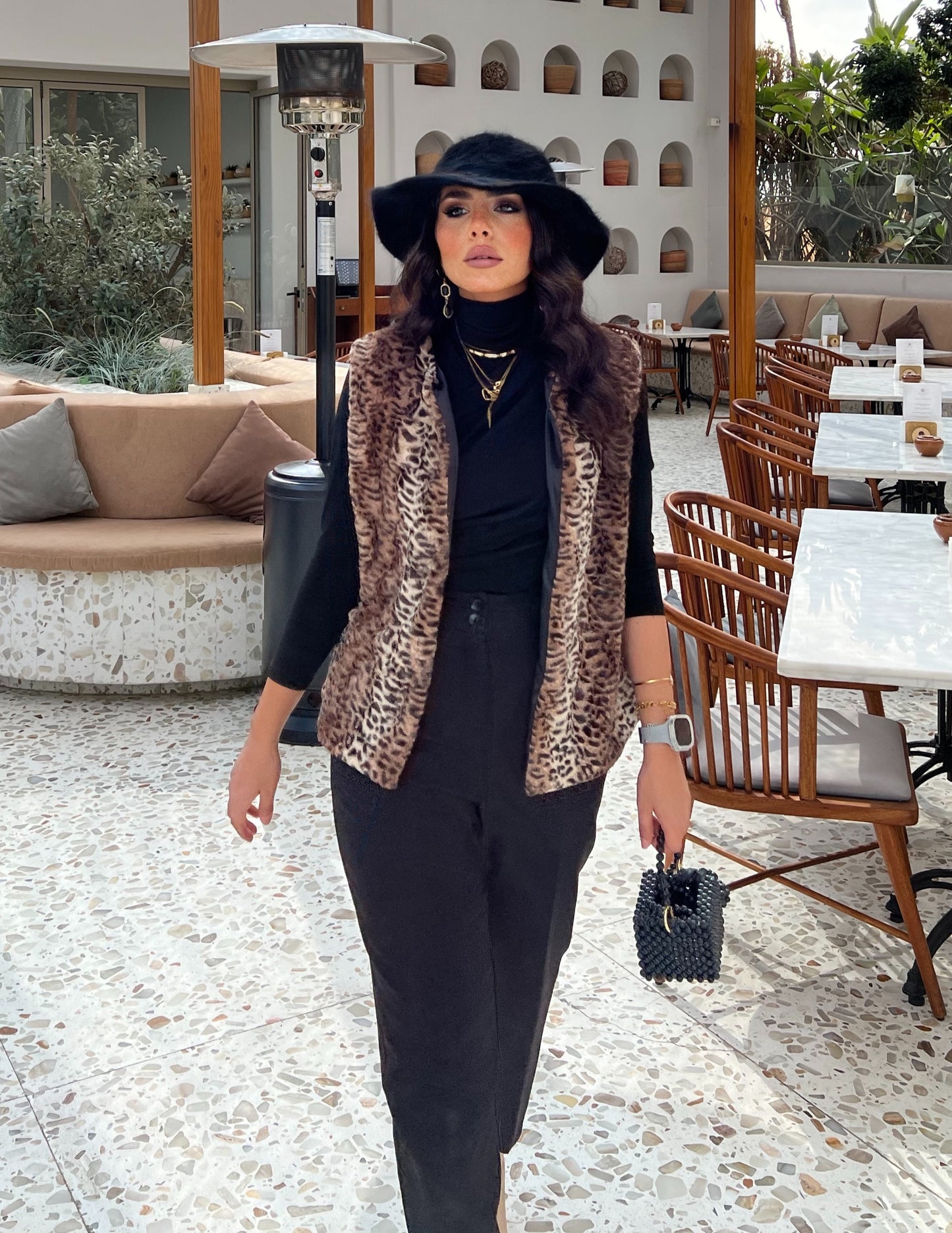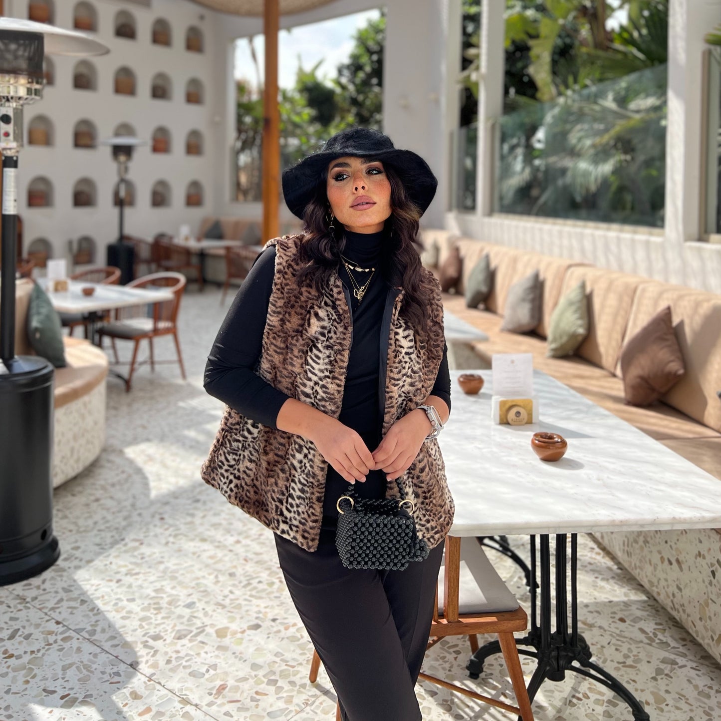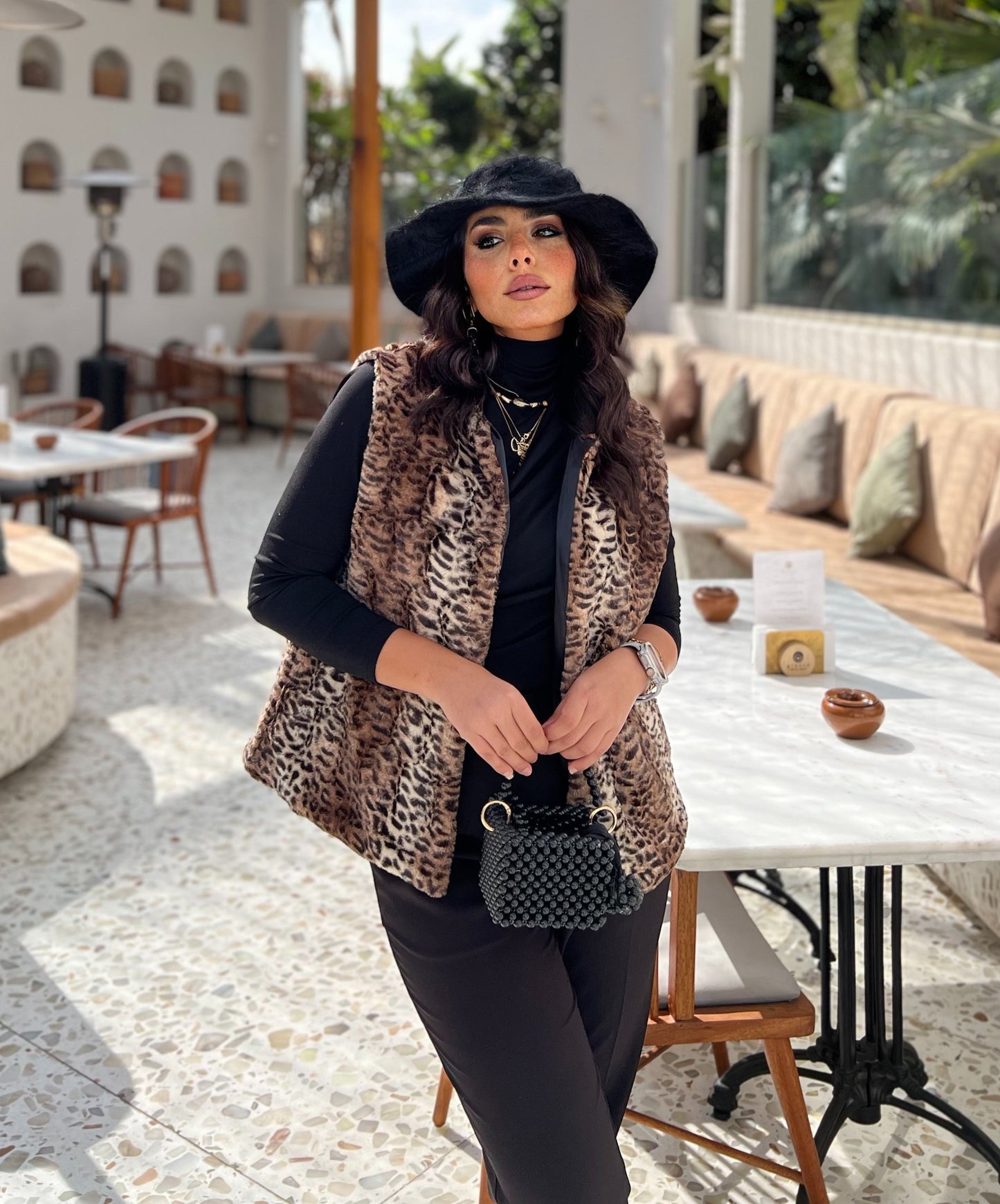 Make a statement with the Wild Luxe Faux Fur Vest, designed for bold elegance. Crafted with plush faux fur and satin-lined, it offers a luxurious feel with added warmth and style. The rich leopard print enhances its chic appeal, making it a perfect layering piece for any outfit.