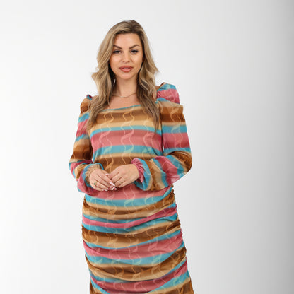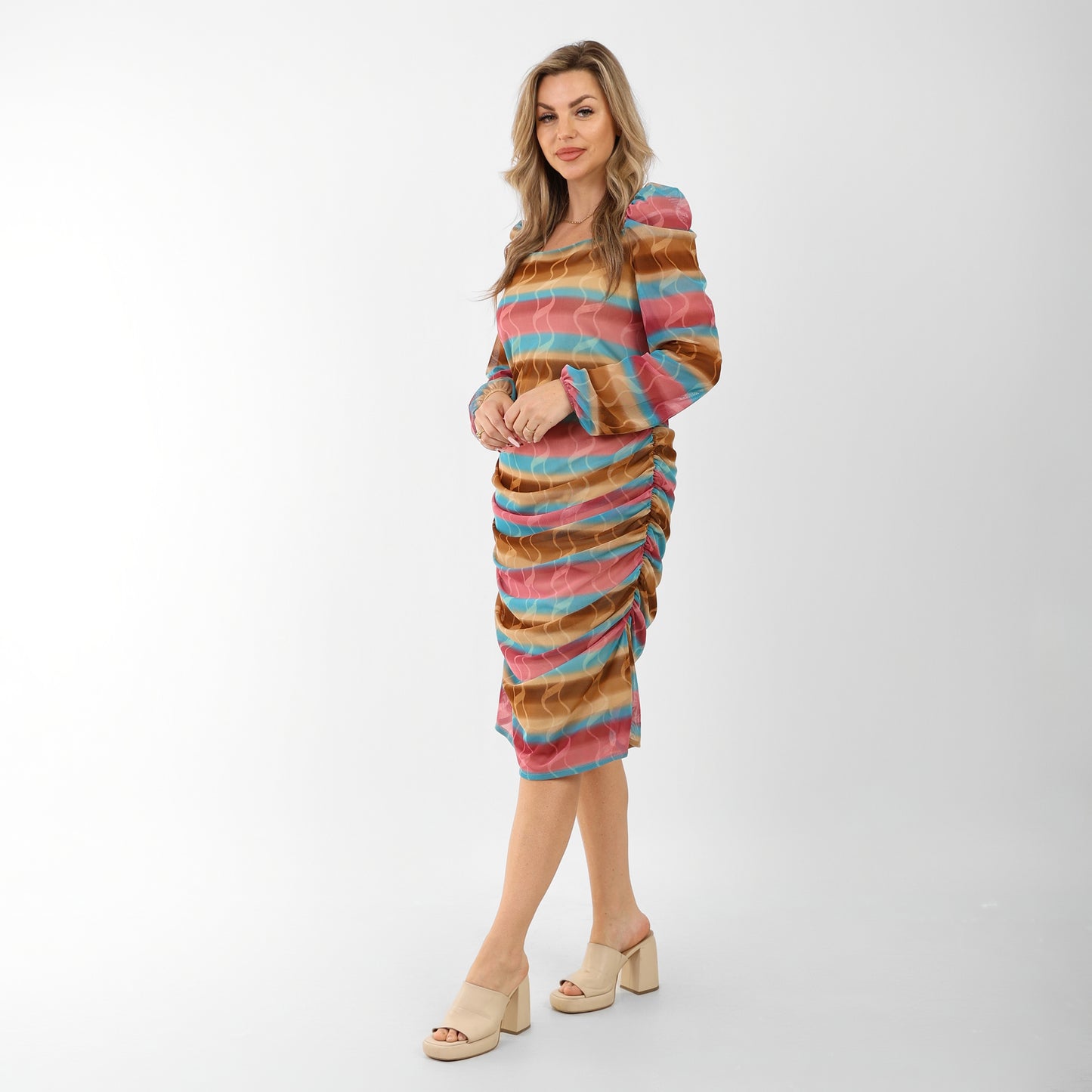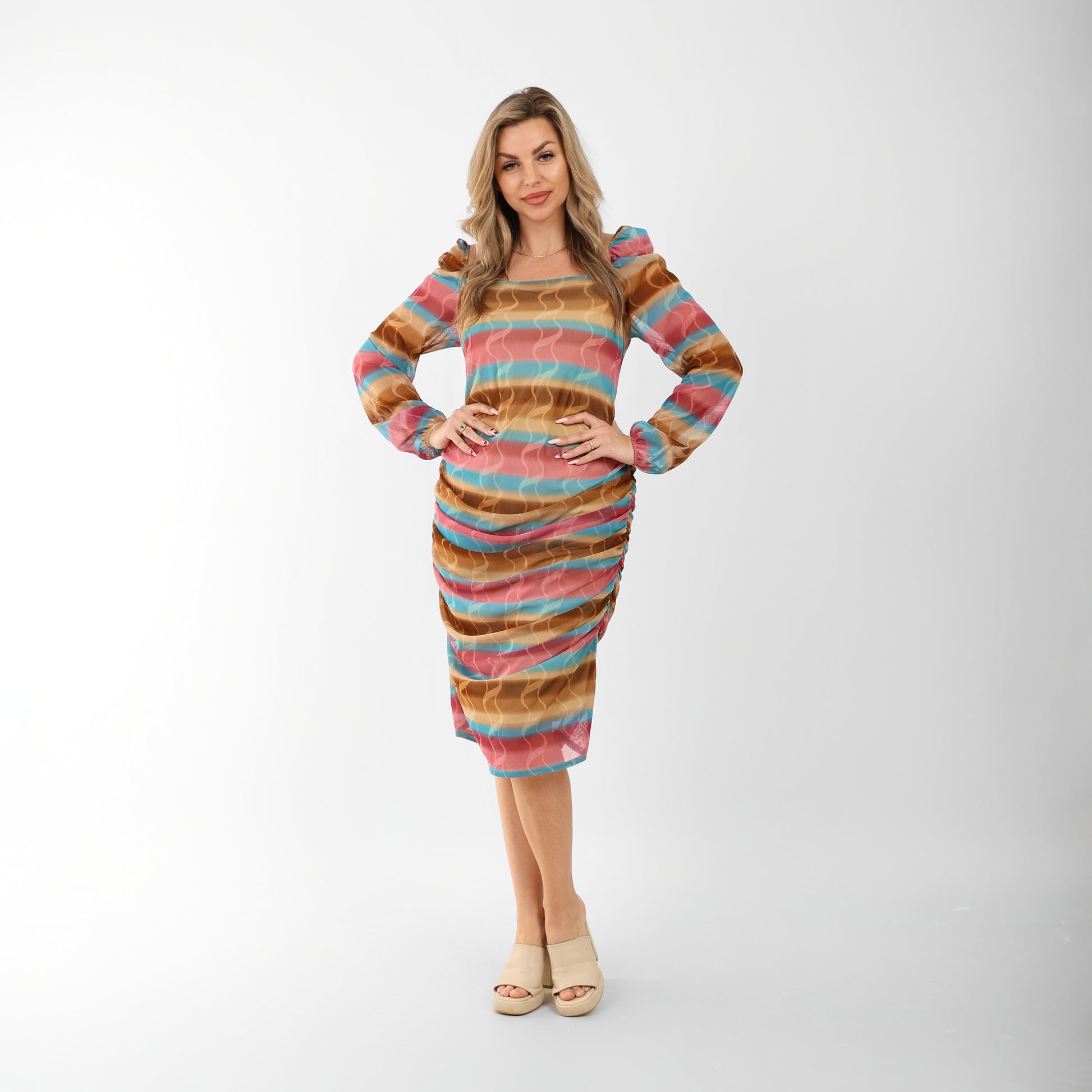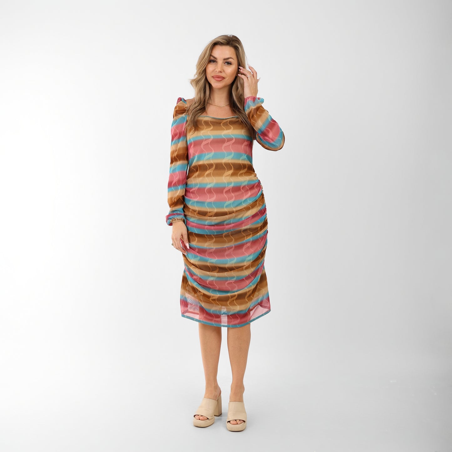 Ruched Striped Midi Dress – Lined Lycra Tulle